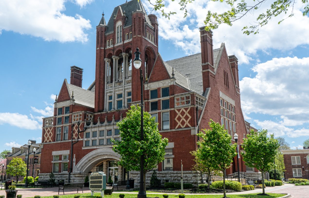 This unique building is the Old Courthouse in Bardstown, KY. The buildings itself resembles a church, but it was built as a courthouse. It is now the home to the local tourism board.