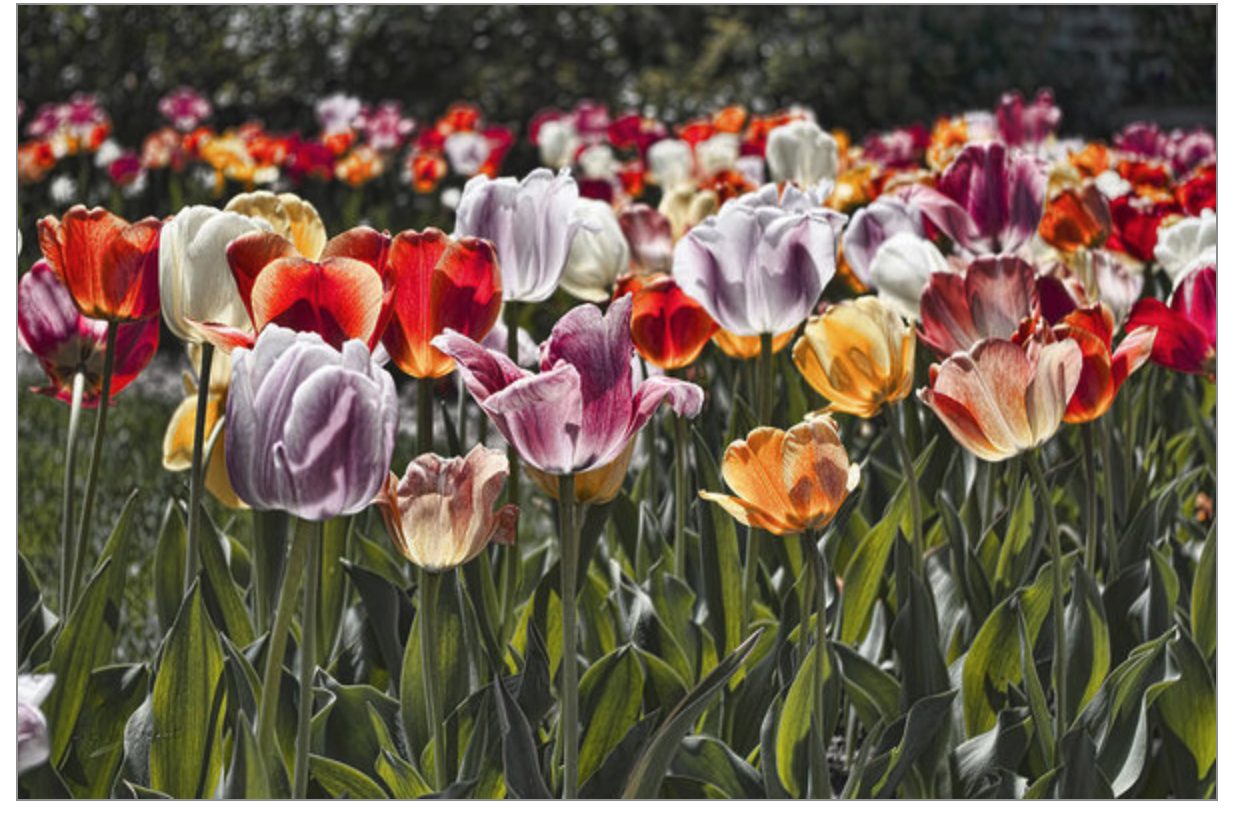 It was a early spring and the flowers were starting to bloom. We had heard about a local thing called Open Gardens. This is where a local person allows a bunch of strangers to wonder about in their yard and enjoy the fruits of their gardening labors. We found this house on the list and decided to check it out. We were there in the morning, when not too many other people were out. The sun was filling all those beautiful tulips with light, creating a blanket of color and light.